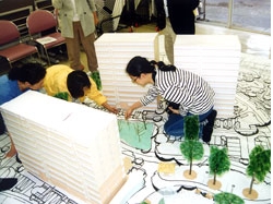 これまで様々な地域で、住民が安心して暮らしていける街づくりを目指し、色々な取り組みが行なわれています。そんな取り組みの一つとして地域の住民と行政が一緒になって街について考えるワークショップが行なわれています。私たちは、子どもや高齢者、男性、女性と様々な人達が、それぞれの視点で街を考えることができるようワークショップの企画・運営を行っています。